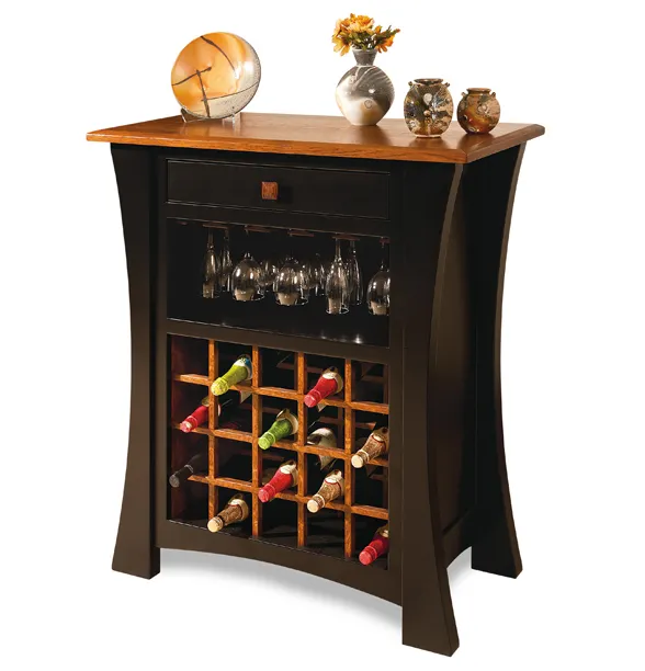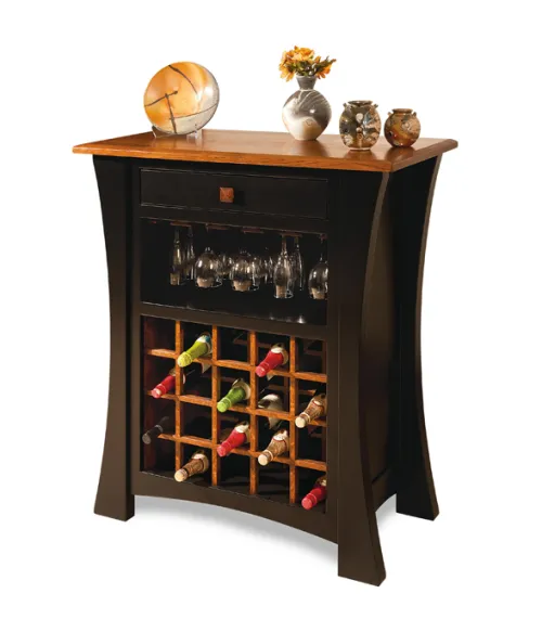 The arts and crafts wine cabinet is pictured in a custom two tone finish. Custom finishes need to be ordered by phone.