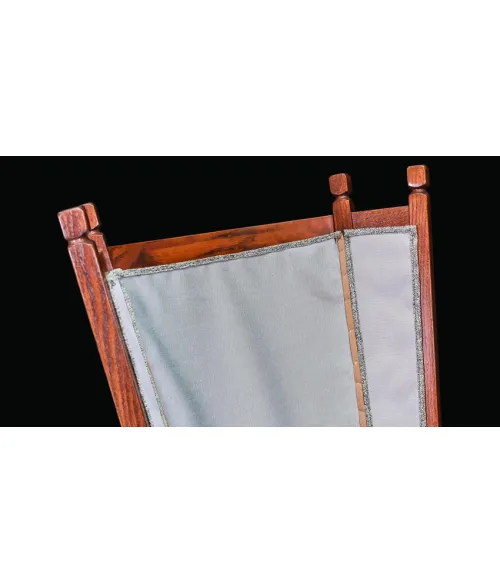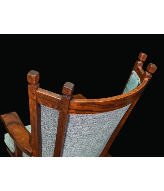 This chair is standard with fabric or leather upholstery with 4" foam. 100% Amish hand crafted with quality hardwood.