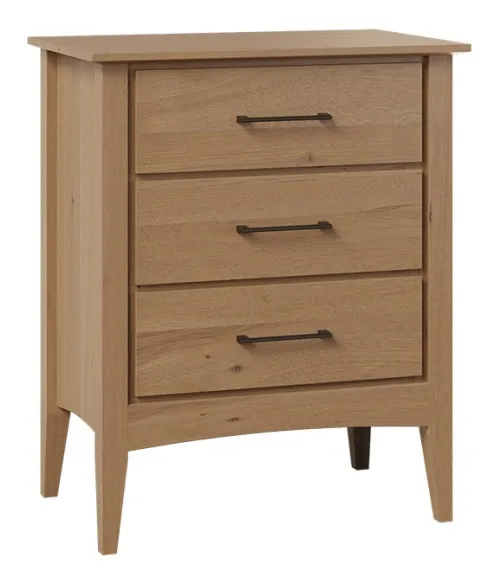 The Atlantic 027 - 3 Drawer Nightstand is a perfect blend of craftsmanship and modern functionality, offering an exceptional solution for your bedside storage needs. Designed to seamlessly integrate into any contemporary bedroom décor, this nightstand exudes elegance with its clean lines and sophisticated design. Its distinctive tapered legs not only enhance its contemporary appeal but also provide sturdy support, ensuring its durability and longevity.