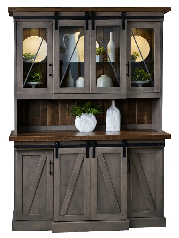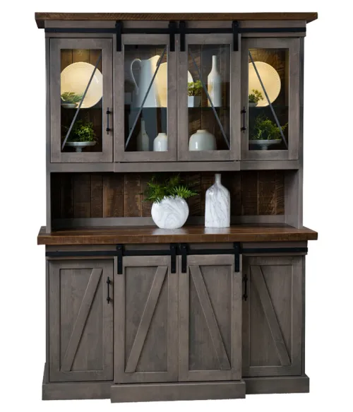3 Adjustable Glass Shelves (1 in each compartment) in hutch top with doors