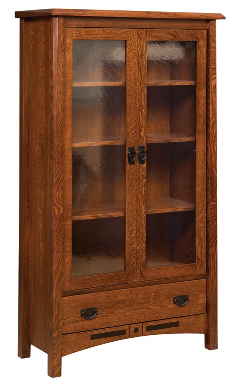 Pictured in quarter sawn white oak with optional antique straw glass.