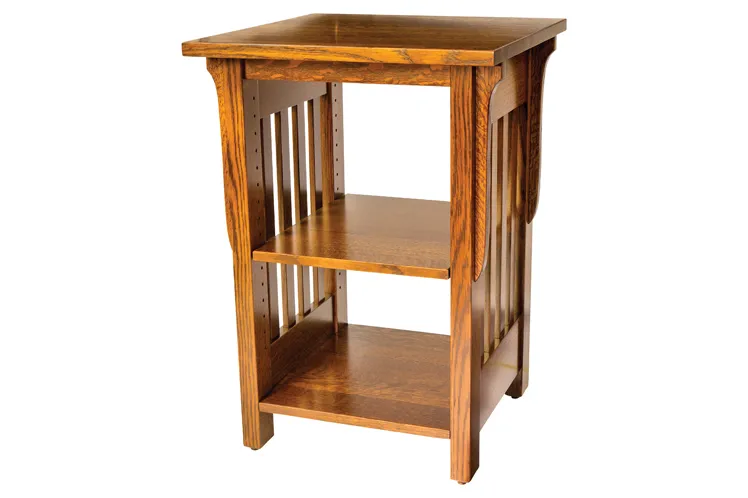 The pictured Boston Printer Stand is built in qs white oak with Tavern stain.
