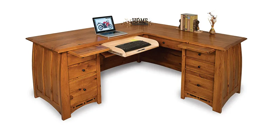 The Boulder Creek L Desk is part of a vast line of Boulder Creek furniture that can unify your home design. This made-in-America desk is built sturdy. The Boulder Creek is an heirloom L desk to beautify a classic modern setting for several years.