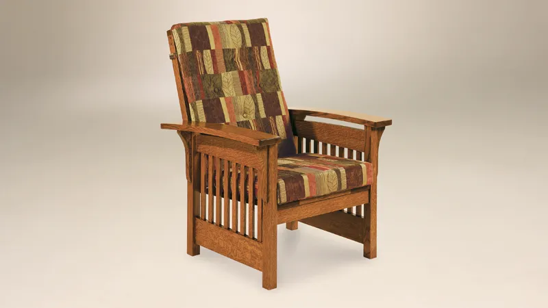 The Bow Arm Slat Chair has its back relaxed at the perfect angle, and arm rests curved for your comfort. The Mission-style sides boast handcrafted wood slats for heirloom comfort and style.
