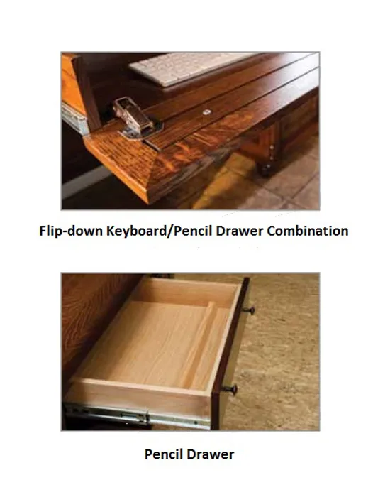 The pictured Bridgefort Mission Computer Desk is built in qs white oak with Michaels Cherry stain.