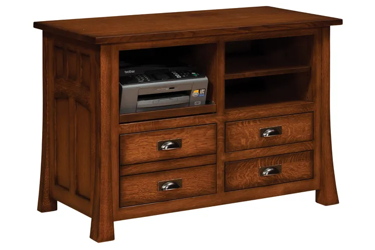 The pictured Bridgefort Mission Lateral File Combo Cabinet is built in qs white oak with Burnished Michaels Cherry stain.