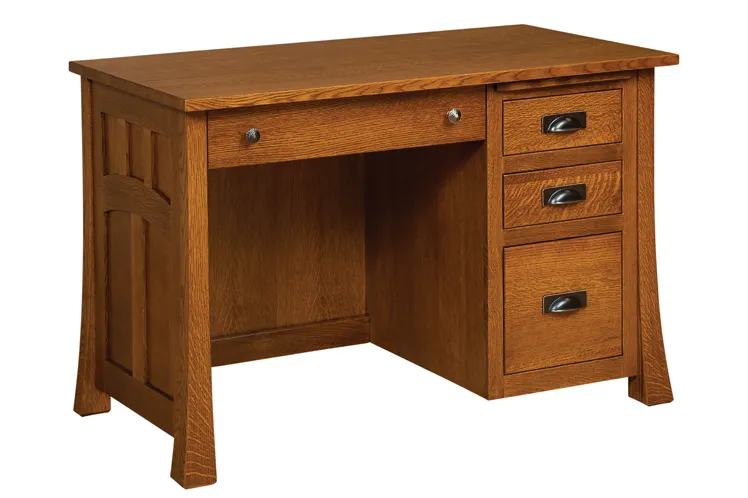 The pictured Bridgefort Mission Student Desk is built in qs white oak with Michaels Cherry stain.