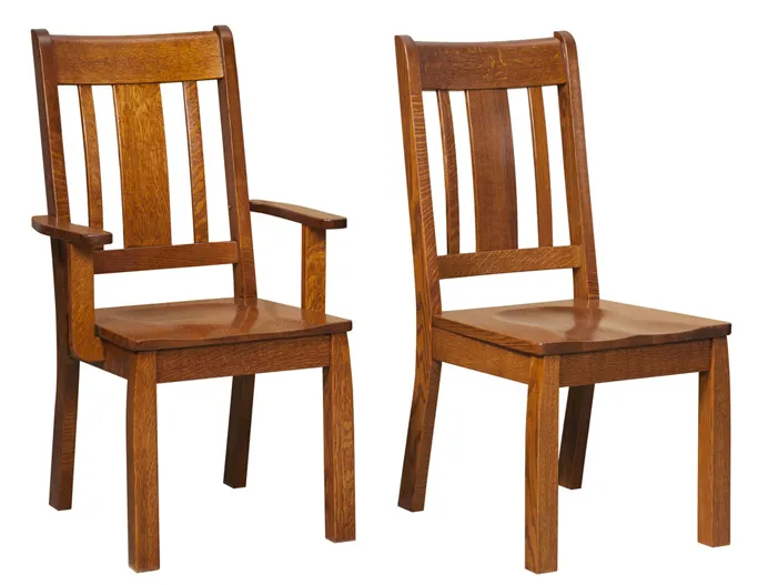 This chair is a beautiful example of a Shaker-style dining room chair. The tall backs and legs have simple, clean lines and embody the Shaker values: compact styling and functionality. The chair can be customized with arm rests or the stain that will match your home.