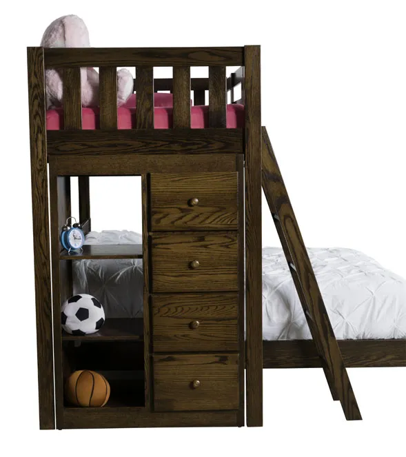 Discover the exquisite craftsmanship and functional design of the #1620 Sedona Loft Bed with Bookcase, a furnishing piece perfect for any room looking to capitalize on space without sacrificing style. This loft bed includes a robust structure featuring the rich, dimensional tones of Earthtone finish on oak wood, complementing any interior decor from modern to rustic. Each aspect of this multi-functional furniture piece is designed with the utmost attention to detail and quality.