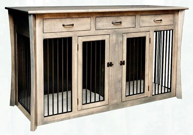 Caledonia Double Pet Cabinet with Drawers and Aluminum Slats