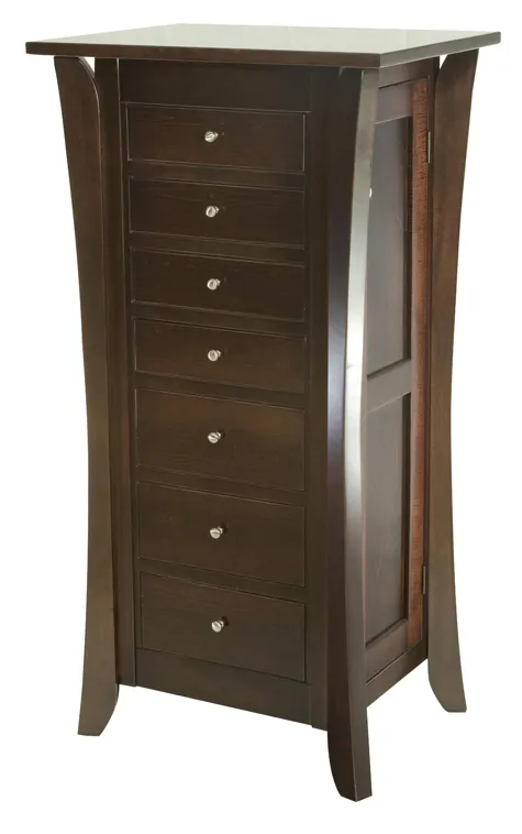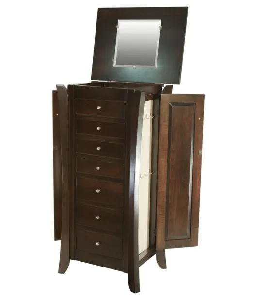 The Caledonia Jewelry Armoire stands as a testament to exceptional craftsmanship and impeccable design, ideal for those who value both aesthetics and functionality in their storage solutions. This elegantly designed jewelry armoire combines practicality with refined style, making it a stunning addition to any bedroom or dressing room.