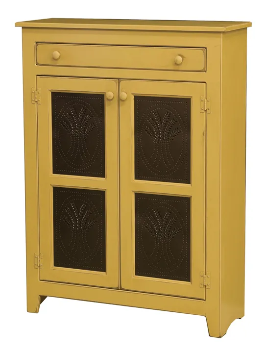 Pictured in pine in Spicy Mustard finish with Wheat Tin inserts. Contact us for custom stains.