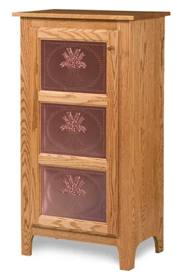 It's hard to find a more beautiful pie safe than this one which has classic copper panels on its door. Inside the door are shelving to stow your baked goods and keep it away from fingers, pets and even pests.