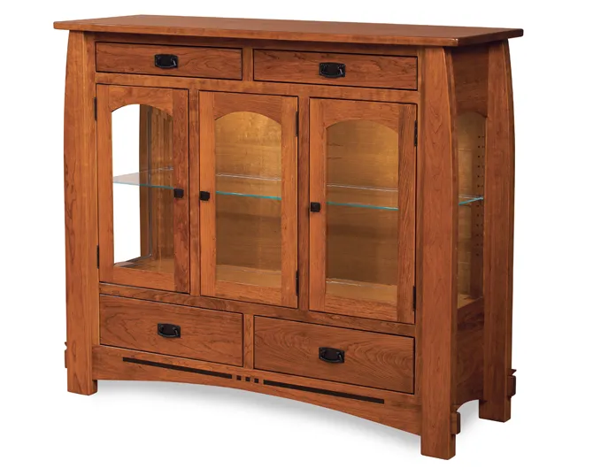 Amish Colebrook High Buffet exhibits a genius use of LED lights, light blocking trim in doors, beveled glass and glass panels for side. It also has undermount soft close drawer slides that prevents noises usually created when someone shuts it carelessly or forcefully.