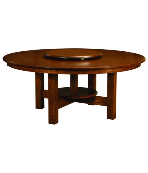 This trestle dining room table both exemplifies Mission style but with a little something special. The table has clean, geometric lines and a round table top that will complement any décor already in your home and won’t go out of style. Underneath the table is a smaller wooden disc that is a comfortable place to put your feet up. Any Mission style dining room chairs will perfectly complement this table. The Amish construction of this table will ensure it will be a fixture in your home and entertaining for generations to come.
