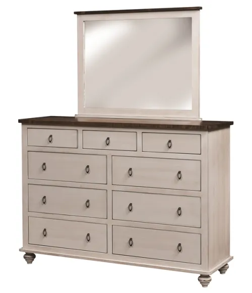 Pictured in brown maple with Pecan finish on top and Swiss Coffee on bas, customized two tone finish. Custom finished need to be ordered by phone.