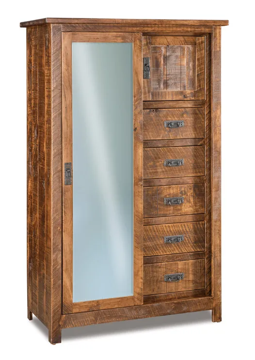 Pictured in rustic rough sawn brown maple with Almond stain.