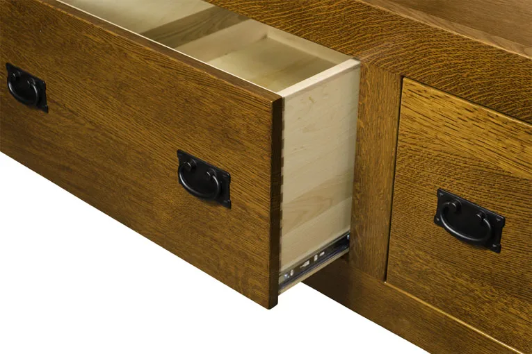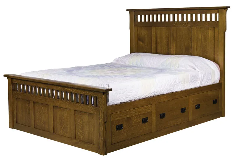 Pictured in quartersawn white oak with Michael's Cherry stain, shown with optional underbed storage.