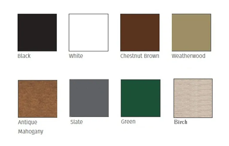 *Available in White, Black, Chestnut Brown, Weatherwood, Green, Slate, Antique Mahogany and Birch.