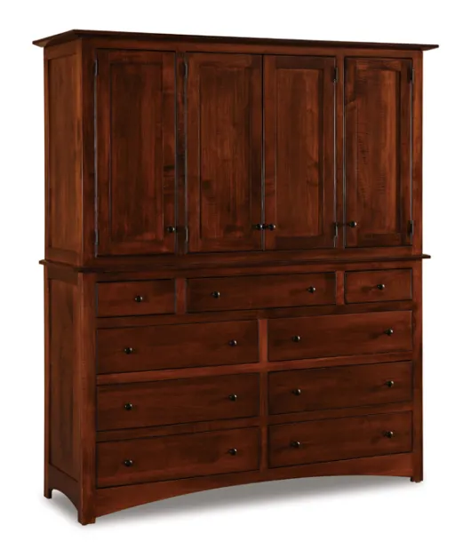 The pictured Finland 2 Piece Deluxe Mule Chest is built in rustic qs white oak with Burnt Umber stain.