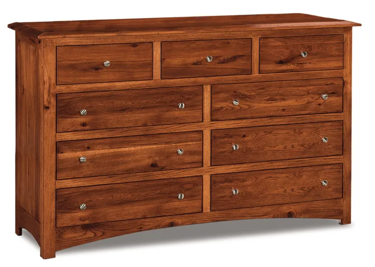 The pictured Finland 72" 9 Drawer Dresser is built in rustic hickory with Golden Harvest stain.