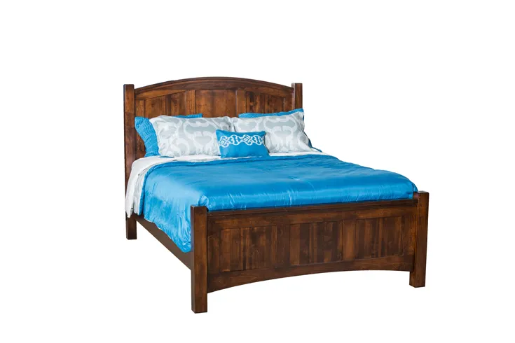 The Finland Bed features four square posts topped with champfer edges. An arch caps three inset panels in the headboard. A similar arch in the base of the footboard rounds out the Finland's elegant style.