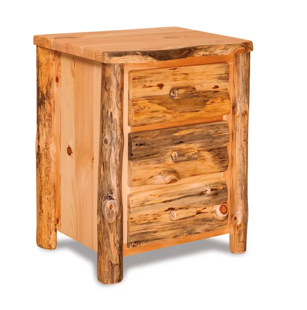 The pictured Fireside Rustic 3 Drawer Night Stand is built in aspen with natural finish.