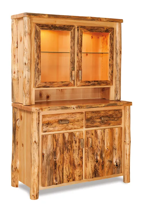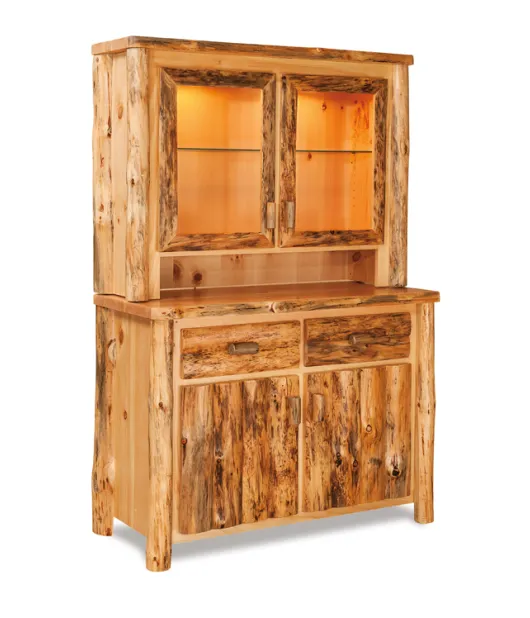 The pictured Fireside Rustic 48" Kitchen Hutch is built in aspen with natural finish.
