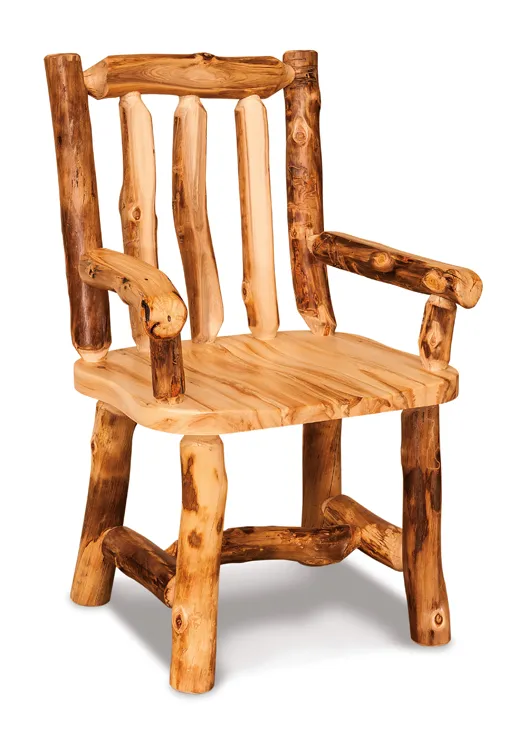 The pictured Fireside Rustic Arm Chair is built in aspen with natural finish.