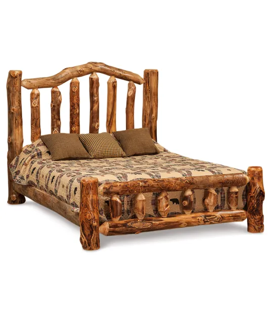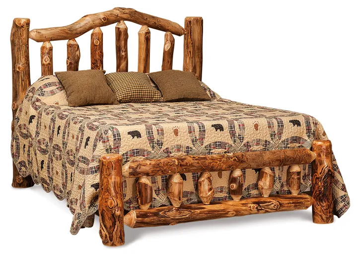 The pictured Fireside Rustic Bed with Low Footboard is built in aspen with natural finish.