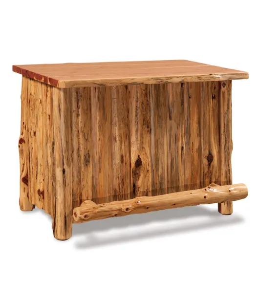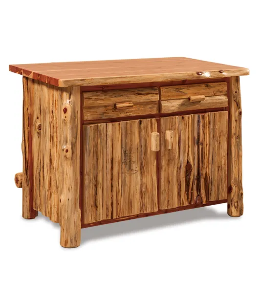 The pictured Fireside Rustic Kitchen Island is built in aspen with natural finish.