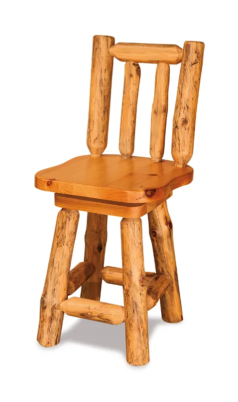 The pictured Fireside Rustic Swivel Bar Stool is built in aspen with natural finish.