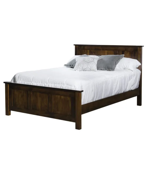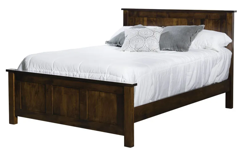 Imagine sinking into this wonderful bed at the end of the day! It's an absolutely timeless bed in its Mission-style. The outlines of the headboard and footboard are simple without being boring and there are inlaid panels on both. If you select this sophisticated bed frame, you can have the bed customized in wood stain shade and with optional shelving below the central panel.