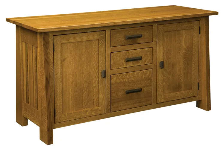 The pictured Freemont Mission 3 Drawer 2 Door Credenza is built in qs oak with Michaels Cherry stain.