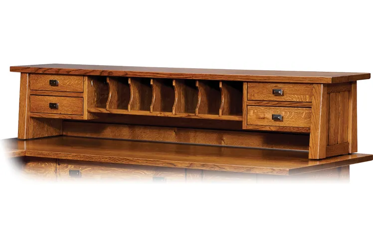 The pictured Freemont Mission 32" File Desk is built in qs white oak with Michaels Cherry stain.