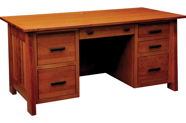 The pictured Freemont Mission 32" File Desk is built in qs white oak with Michaels Cherry stain.