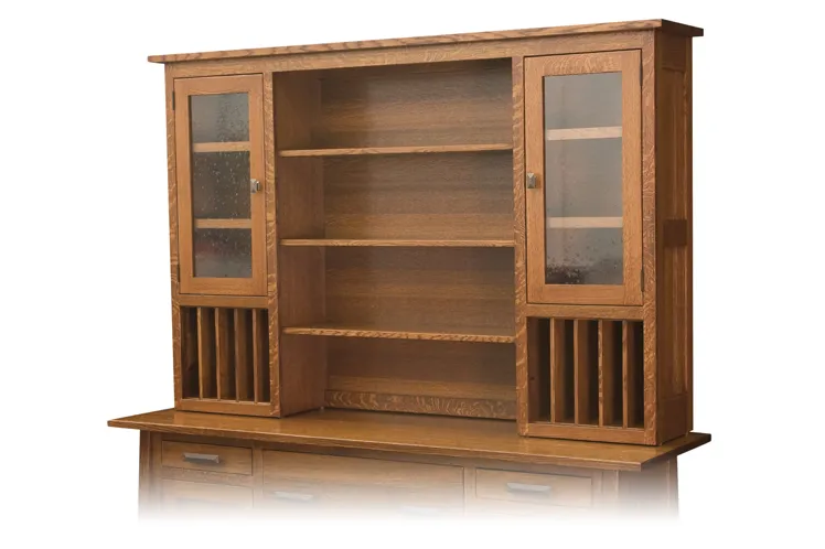 The pictured Freemont Mission 4 Drawer 2 Door Credenza is built in qs oak with Michaels Cherry stain.