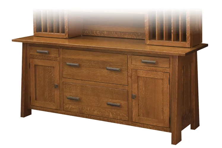 The pictured Freemont Mission 4 Drawer 2 Door Credenza is built in qs oak with Michaels Cherry stain.