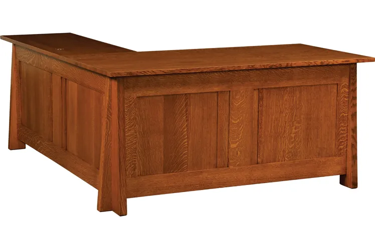 The pictured Freemont Mission 66" Corner Desk is built in qs oak with Michaels Cherry stain.