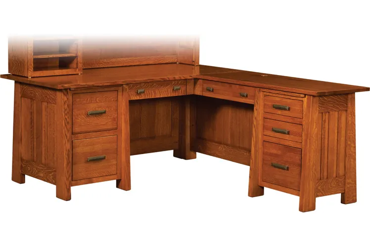 The pictured Freemont Mission 66" Corner Desk is built in qs oak with Michaels Cherry stain.