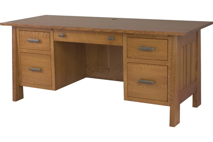 The pictured Freemont Mission Executive Desk is built in qs white oak with Michaels Cherry stain.