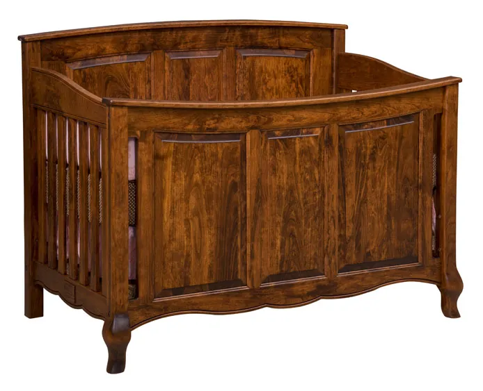 Your child deserves world-class, beautiful baby furniture that will grow alongside your family. This handcrafted French style crib is the perfect solution for your growing family. The front of the Amish baby bed has a wood panel which means your child will be secure inside of it.