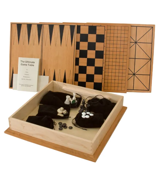 Dimensions: 13¼"w x 13¼"d x 4"h Maple/Walnut Wooden Chess & Checker Pieces Included..