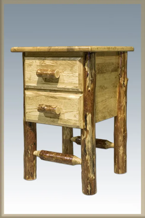 Rustic has never been so cosy! This two drawer night stand is hand built to look like it is still part of the tree.