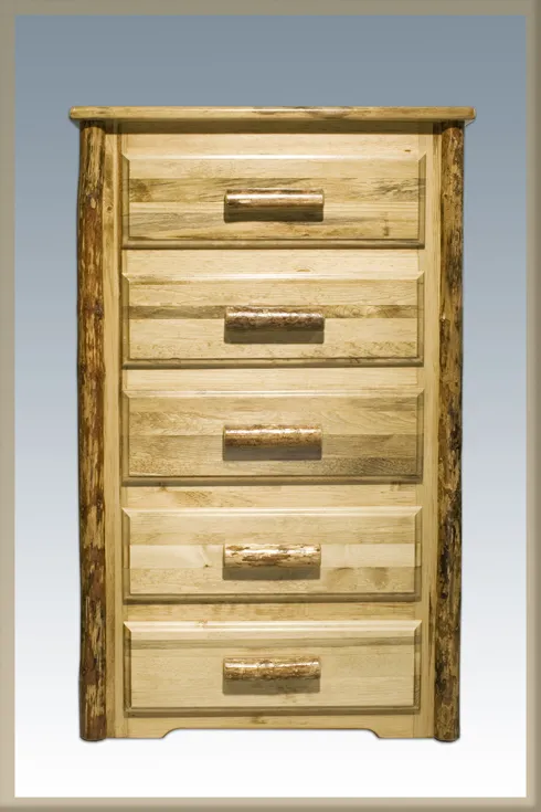 You will enjoy storing your clothing in this Glacier Country dresser. With two finishing options by Amish handcraftsmen, the dresser can appear as simple or as rustic as you want.