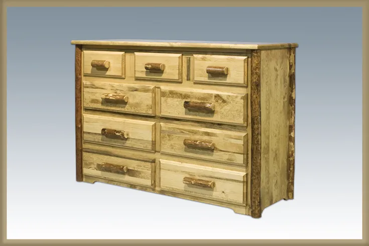 For extra storage this dresser organises more clothing and accessories while retaining the rustic Glacier Country style. This handcrafted dresser is structurally sound and a pleasure to use. Bring the beauty of home grown wood to your bedroom.