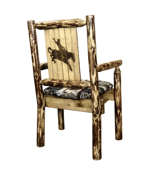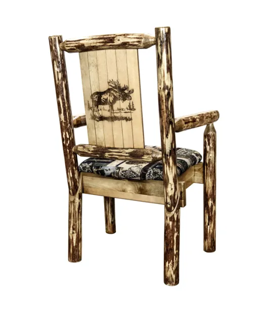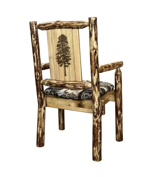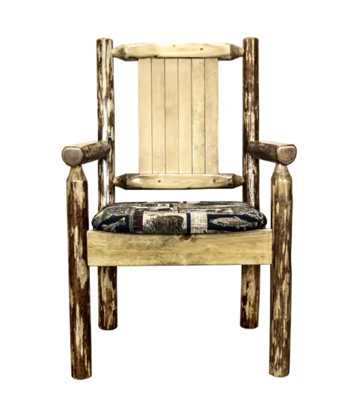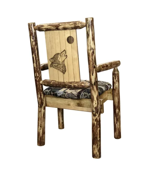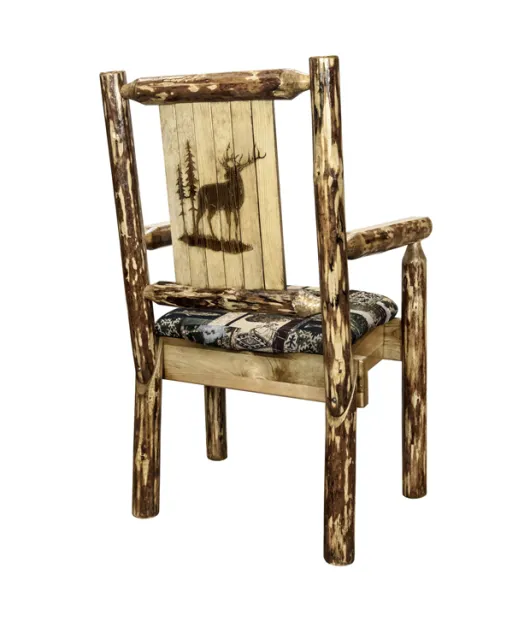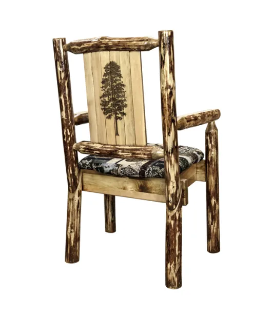 Glacier Country Captain's Chair with Upholstery and Laser Engraved Design