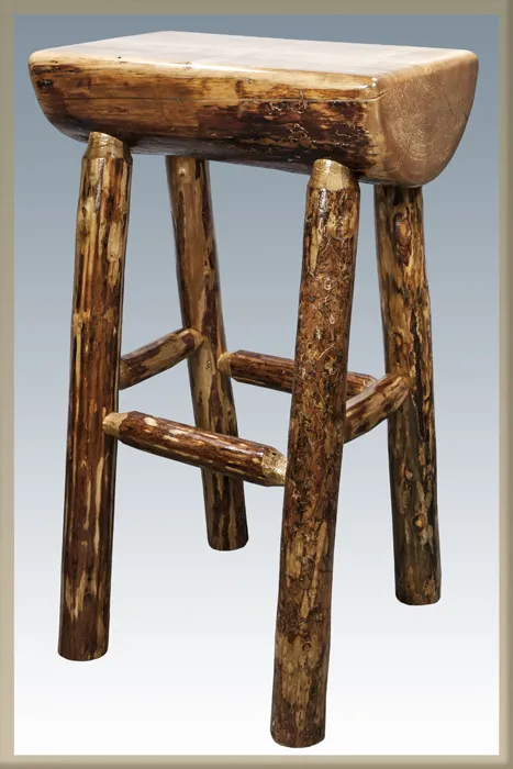 The Glacier Country Half Log Bar Stool is all logs with a little bark left on for a rustic look.