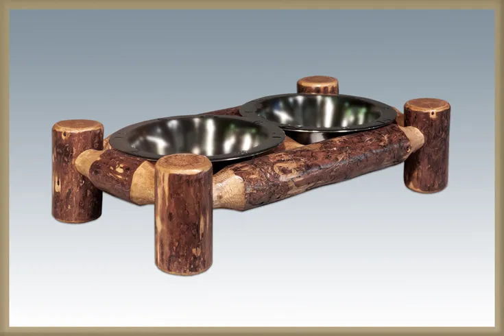 This log feeding stand will let your small pet dine in the same luxury as you at your Glacier Country table.