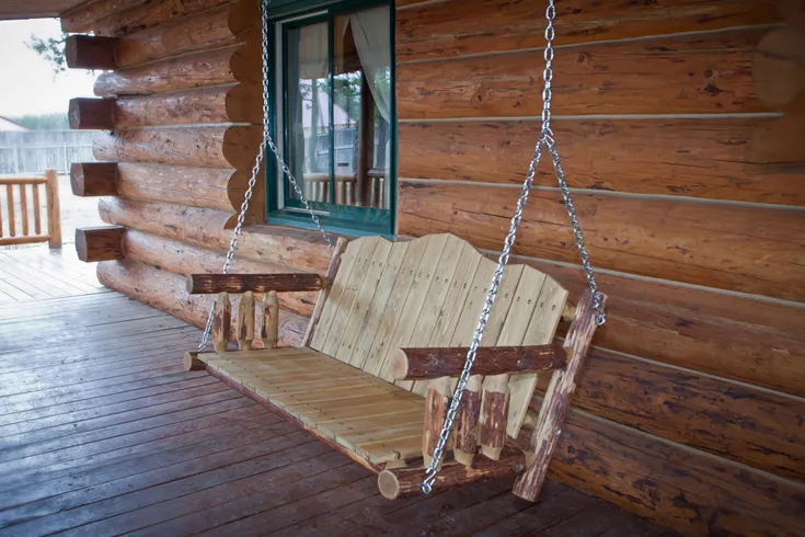 Swing into country style with this rustic porch swing. On this swing a timber seat and back are framed by log sides to build a relaxing experience.